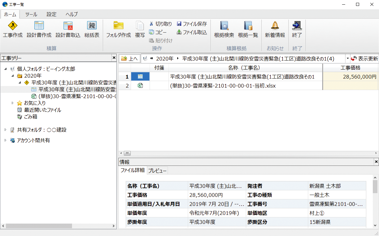 ![]() 蓄積した「積算根拠 データ」を手早く検索 調査して入手した情報を 「積算根拠データ」として蓄積可能 次回積算時は、必要な情報を手早く 検索し、活用できます |